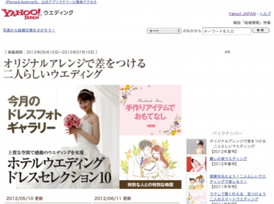 Yahoo Japan トップページ掲載 Yahooウェディングトップページ掲載